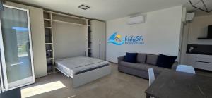 Featuring a private entrance, this air-conditioned holiday home consists of 1 living room, 1 separate bedroom and 1 bathroom with a shower and a bidet. In the fully equipped kitchen, guests will find a stovetop, a refrigerator, a dishwasher and kitchenware. Boasting a terrace with sea views, this holiday home also provides a washing machine and a flat-screen TV. The unit offers 2 beds.