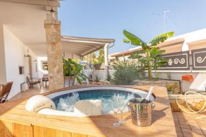This villa's standout features are the hot tub and spa bath. Boasting a private entrance, this air-conditioned villa comes with 1 living room, 2 separate bedrooms and 2 bathrooms with a shower and a bidet. Guests will find a stovetop, a refrigerator, kitchenware and an oven in the well-fitted kitchen. The villa also includes a barbecue. The villa has tiled floors, a seating area with a flat-screen TV, a washing machine, a tea and coffee maker as well as garden views. The unit has 4 beds.