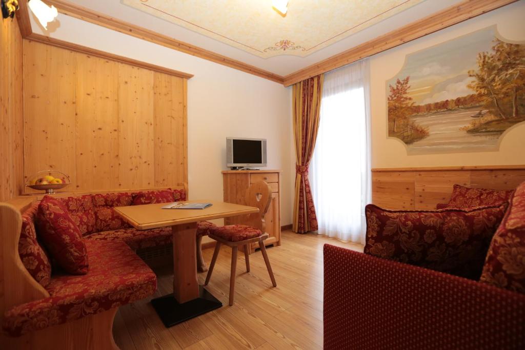 Todas cuentan con TV LCD y minibar. La mayoría de las habitaciones tienen balcón con vistas a los Dolomitas. Todos los días se sirve un desayuno buffet abundante con beicon y huevos bajo petición.
