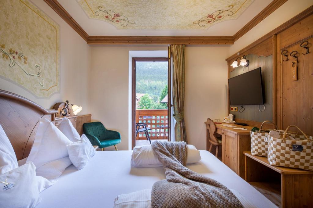 Elegantly furnished room with free Wi-Fi, an LCD and a minibar. Most rooms offer a balcony, some with Dolomite views.