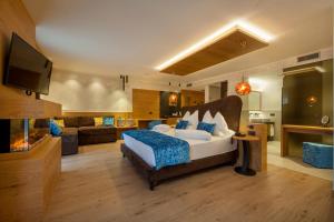 This luxurious double room provides a hot tub, a sauna and a fireplace. A seating area with a flat-screen TV, a desk, a terrace and a private bathroom are provided in this spacious double room. The unit offers 2 beds.