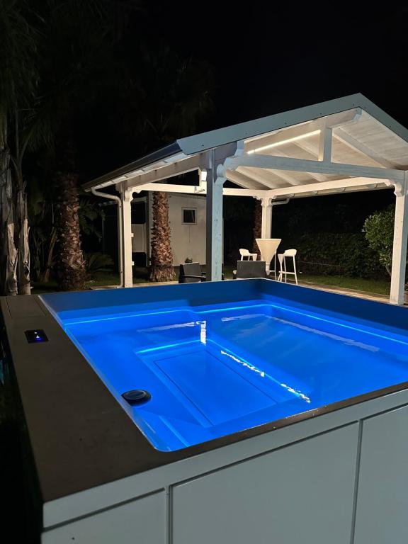 This holiday home provides a hot tub. Boasting a private entrance, this spacious holiday home also includes 2 separate bedrooms and 2 bathrooms with a shower and a bidet. Guests will find a refrigerator and a microwave in the kitchen. The holiday home also features a barbecue. The air-conditioned holiday home offers a flat-screen TV, a washing machine, a tea and coffee maker, a dining area as well as sea views. The unit has 2 beds.