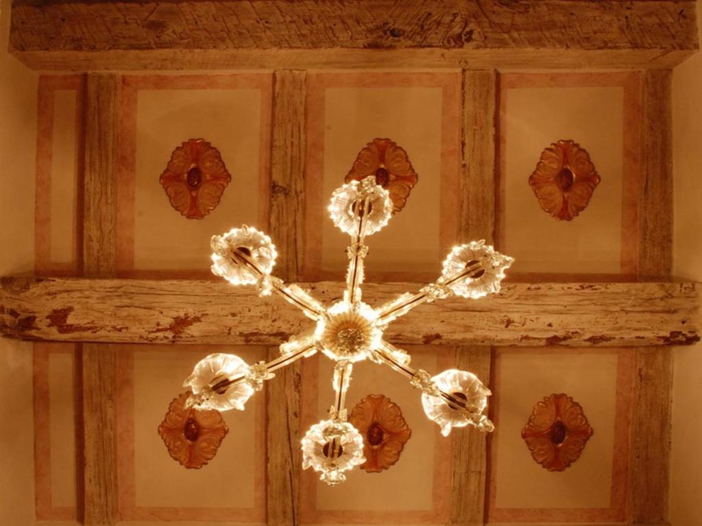 Habitación decorada de forma individual con antigüedades y techos de madera vista.