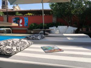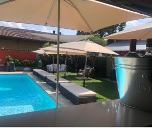 Las habitaciones cuentan con armario y cafetera. En B&B Villa la Canonica con piscina a Padernello se sirve un desayuno italiano. El alojamiento ofrece terraza solárium. Puedes jugar al ping-pong en B&B Villa la Canonica con piscina a Padernello.