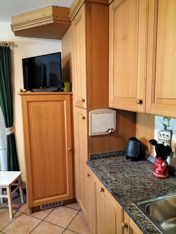 Este apartamento con vistas a la montaña tiene suelo de parquet, 2 dormitorios y 1 baño con bidet, ducha y secador de pelo. La cocina está equipada con nevera, lavavajillas y horno, además de hervidor.
