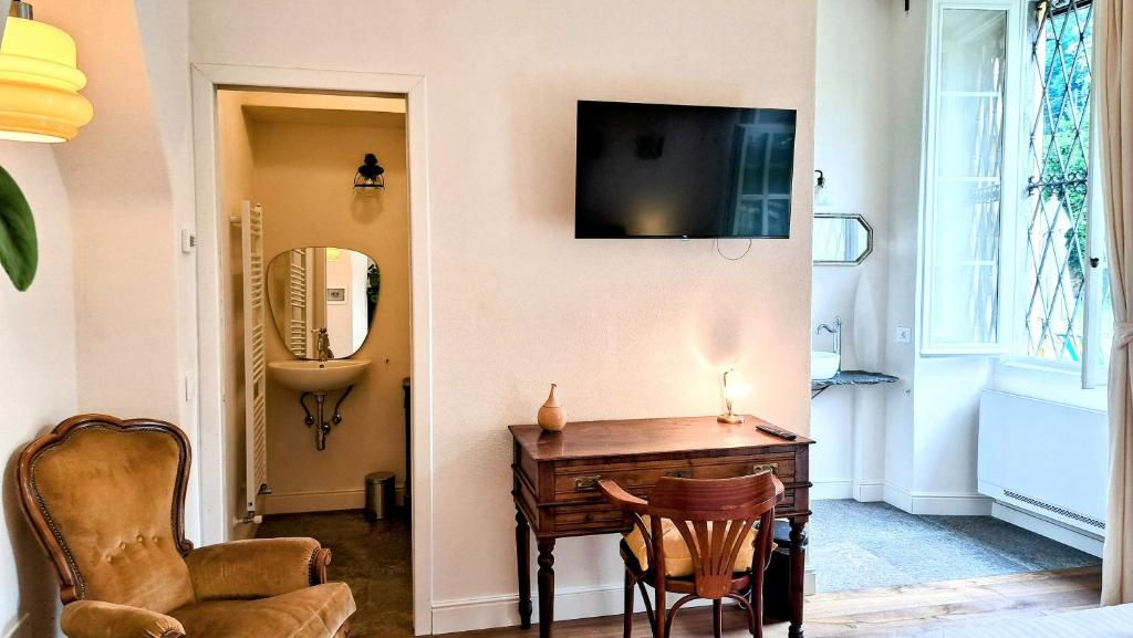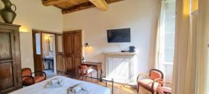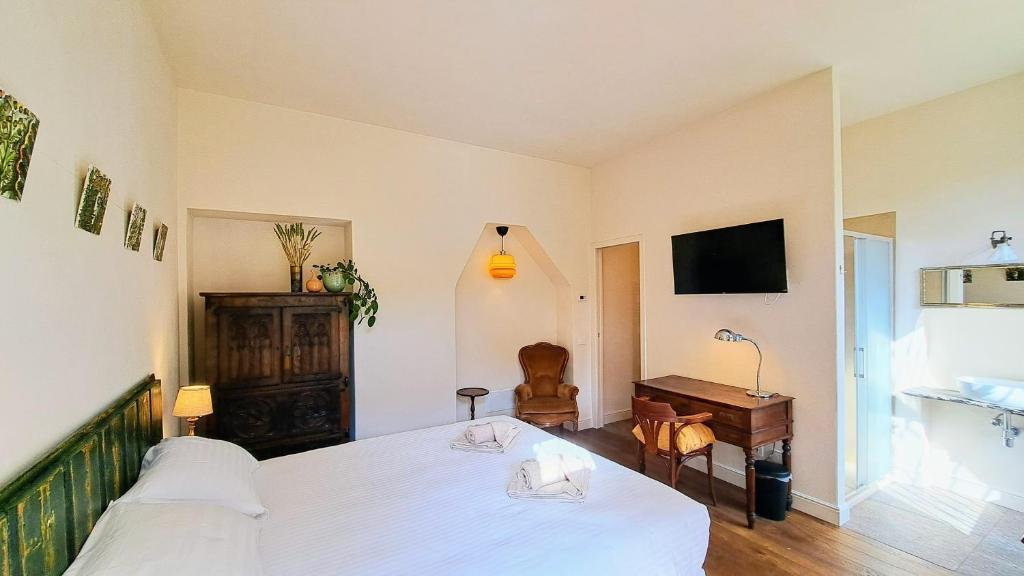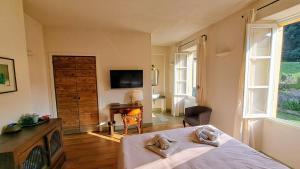 Providing free toiletries and bathrobes, this double room includes a private bathroom with a shower, a bidet and slippers. The double room provides a flat-screen TV, a tea and coffee maker, a wardrobe, parquet floors as well as garden views. The unit offers 1 bed.