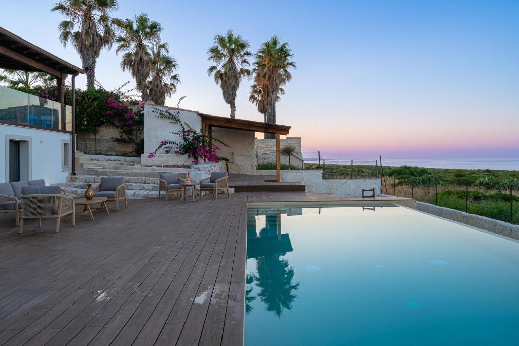 Casa dell'Alba - Infinity Pool, Natura & Vista Mare, que tiene piscina al aire libre, jardín y terraza, dispone de alojamiento en Plemmirio con wifi gratis y vistas al mar. Este alojamiento con vistas a la piscina ofrece patio.
