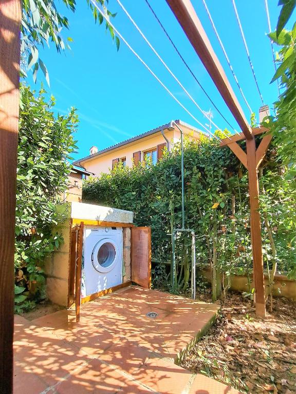 Featuring a private entrance, this air-conditioned holiday home consists of 1 living room, 2 separate bedrooms and 1 bathroom with a shower and a bidet. Guests will find a stovetop, a refrigerator, a dishwasher and kitchenware in the kitchen. The holiday home also offers a barbecue. The holiday home provides a flat-screen TV, a washing machine, a tea and coffee maker, a seating area as well as garden views. The unit offers 4 beds.