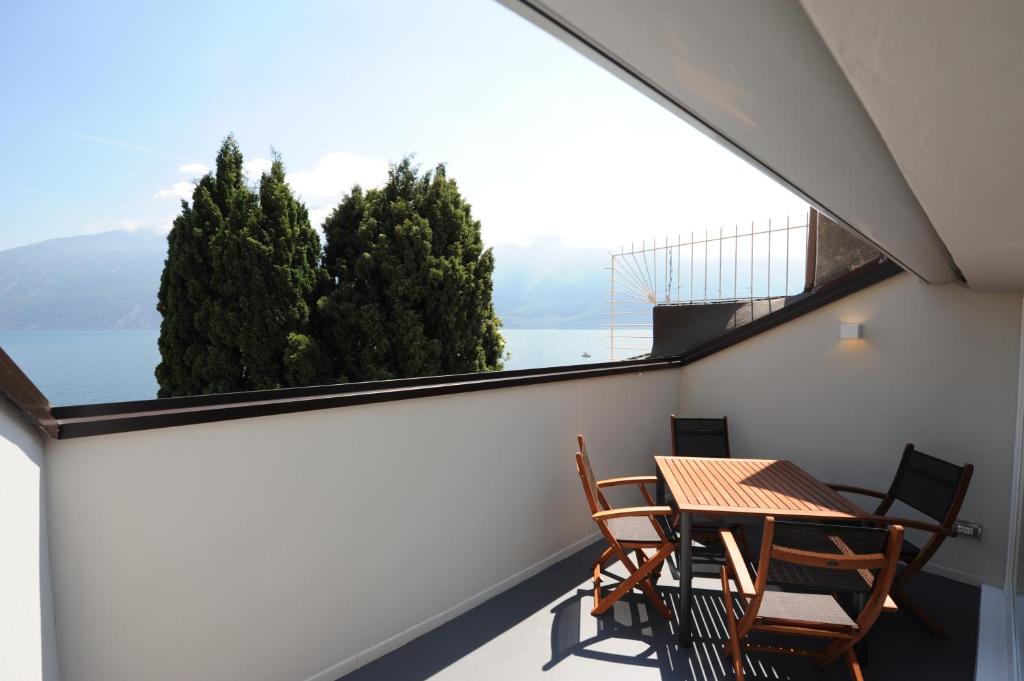 Los huéspedes pueden tomar un barco y cruzar el lago hacia Malcesine.