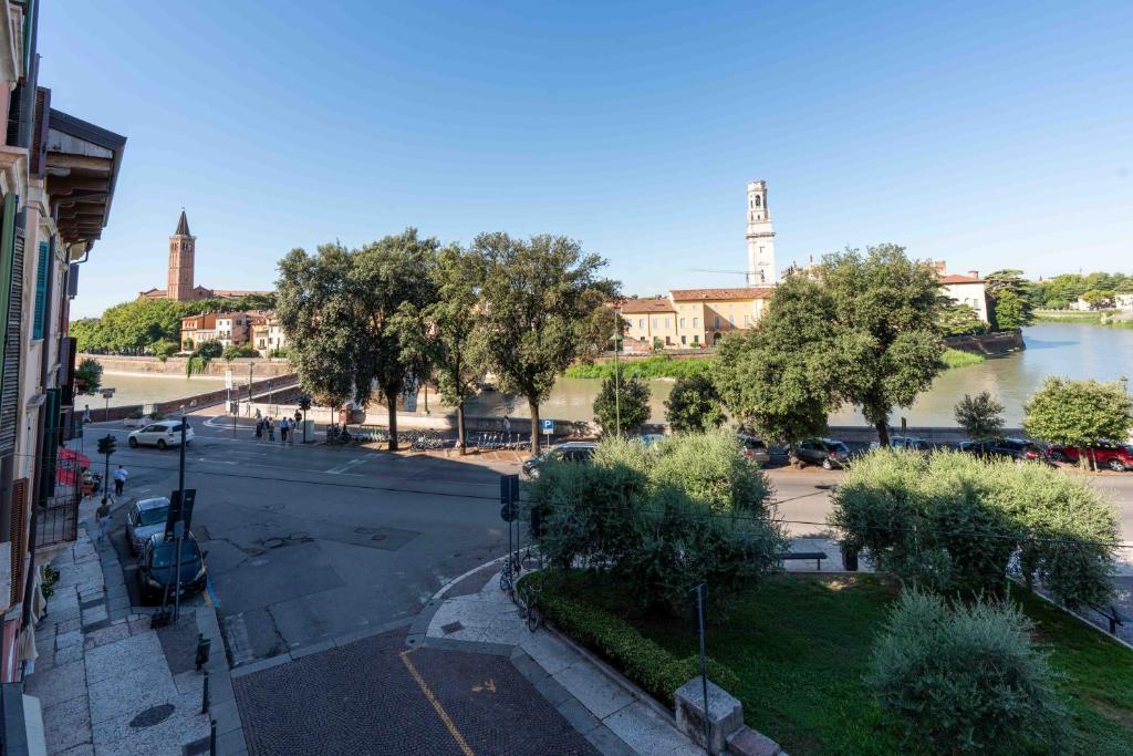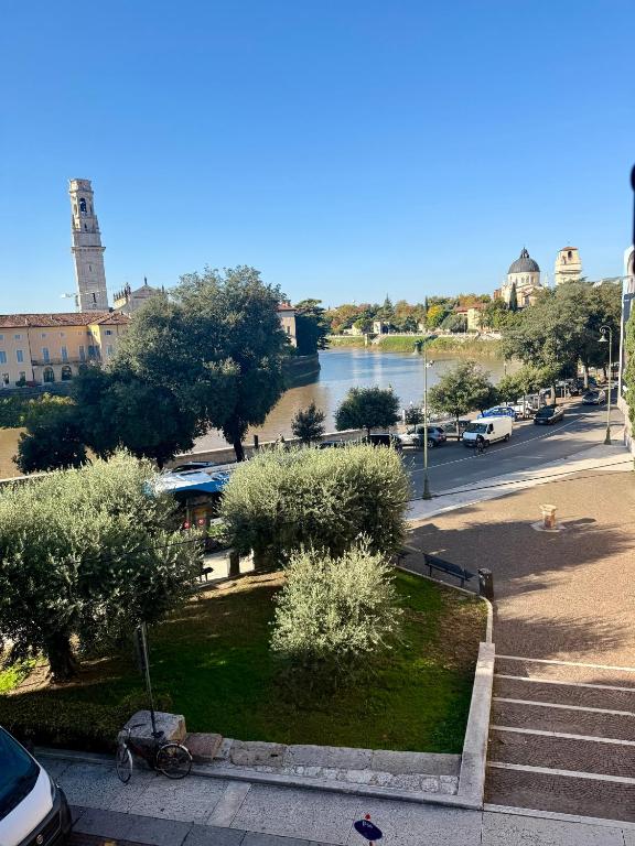 El alojamiento ofrece vistas al río y está a 5 min a pie de Piazzale Castel San Pietro y a 1,6 km de Puente de Castelvecchio. Este apartamento de 1 dormitorio ofrece TV de pantalla plana, aire acondicionado y sala de estar.