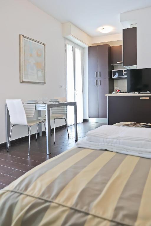 The fully equipped kitchen features a stovetop, a refrigerator, a dishwasher and kitchenware. The studio provides air conditioning, a washing machine, a balcony with a quiet street view as well as a private bathroom featuring a shower. The unit offers 1 bed.