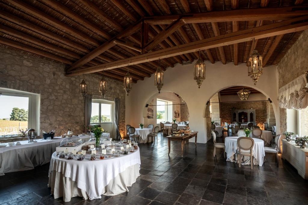 El restaurante sirve cocina siciliana e italiana y ofrece un desayuno bufé todas las mañanas. Asimismo, se elaboran menús especiales bajo petición. El castillo se encuentra en la ladera norte de la montaña de Monte Lauro, a 50 minutos en coche del aeropuerto de Catania y a unos 40 minutos en coche de la costa y de la reserva natural Oasi del Simeto.