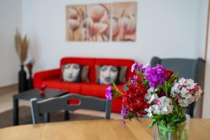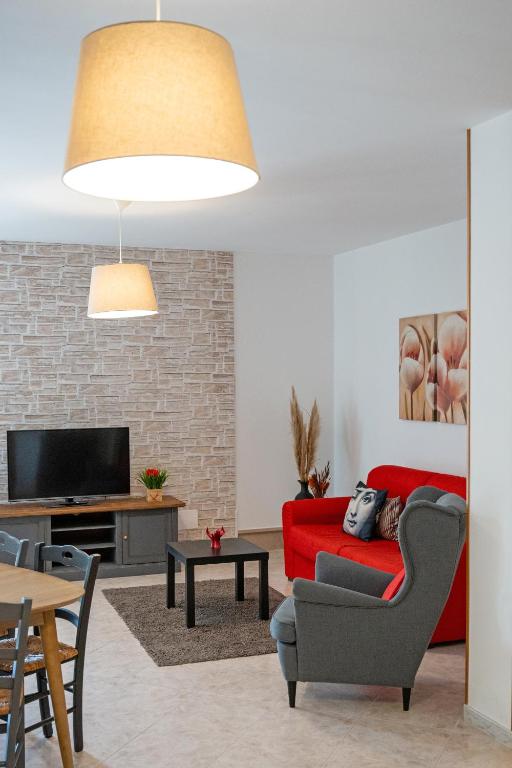 Featuring a private entrance, this air-conditioned holiday home is comprised of 1 living room, 3 separate bedrooms and 1 bathroom with a shower and a bidet. In the fully equipped kitchen, guests will find a stovetop, a refrigerator, kitchenware and an oven. Boasting a terrace with garden views, this holiday home also offers a washing machine and a flat-screen TV. The unit offers 5 beds.