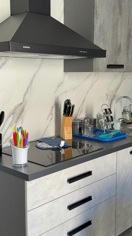 The fully equipped kitchen features a stovetop, a refrigerator, an oven and a microwave. The air-conditioned holiday home offers a flat-screen TV with satellite channels, a washing machine, a private entrance, soundproof walls as well as sea views. The unit offers 4 beds.
