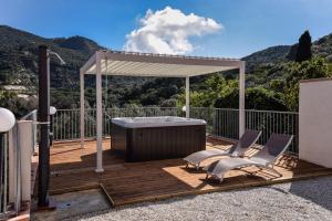 The hot tub is the standout feature of this villa. Boasting a private entrance, this air-conditioned villa comes with 1 living room, 1 separate bedroom and 1 bathroom with a shower and a hairdryer. Guests will find a stovetop, a refrigerator, a dishwasher and kitchenware in the well-fitted kitchen. The villa also includes a barbecue. Featuring a terrace with sea views, this villa also features a washing machine and a flat-screen TV with cable channels. The unit has 3 beds.