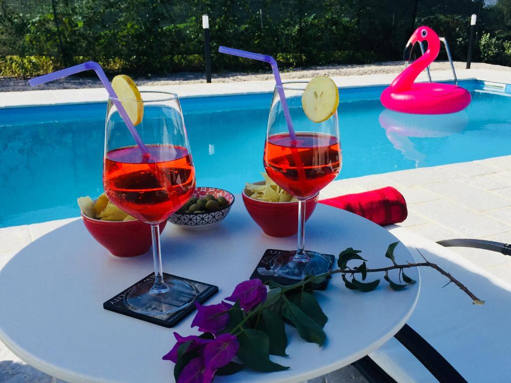Esta villa dispone de piscina privada, jardín, zona de barbacoa, wifi gratis y parking privado gratis. Esta villa con aire acondicionado consta de 2 dormitorios, una sala de estar, una cocina totalmente equipada con nevera y cafetera, y 1 baño con bidet y ducha.