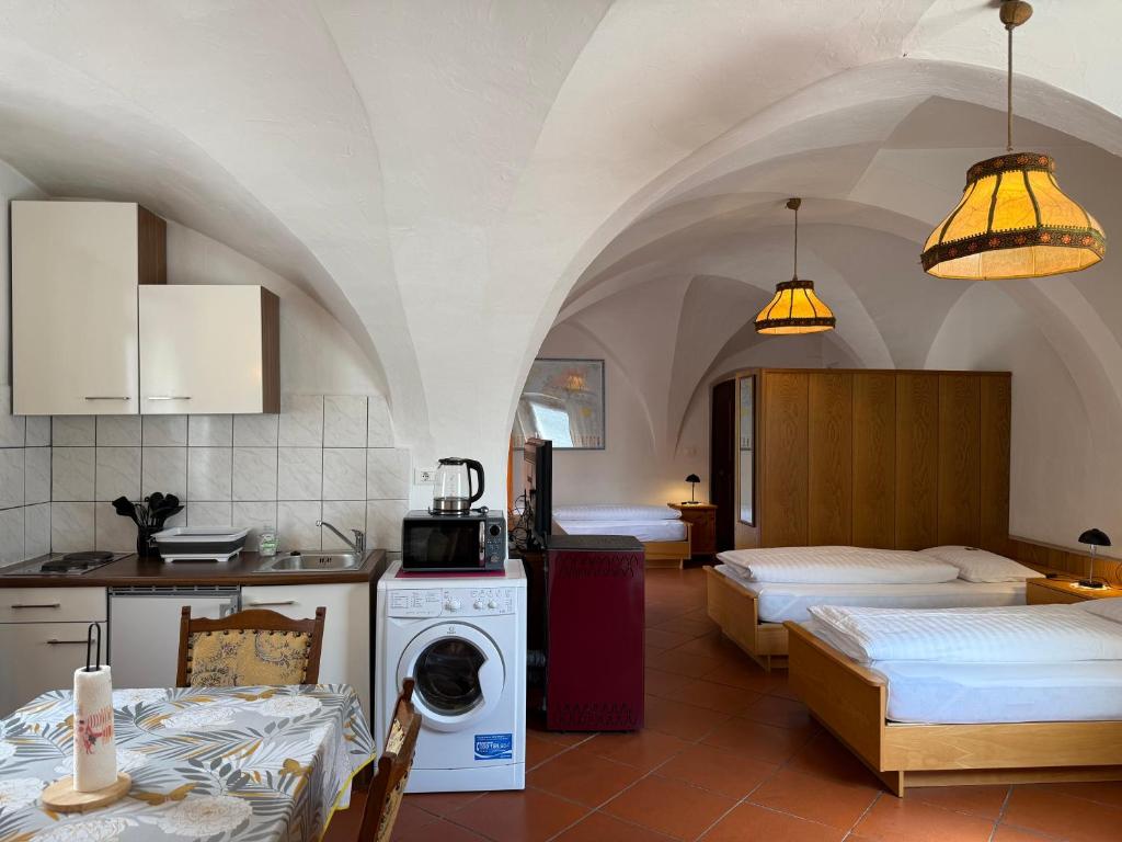 Offering free toiletries, this studio includes a private bathroom with a shower and a hairdryer. The well-fitted kitchenette has a refrigerator, kitchenware and a microwave. The air-conditioned studio offers a flat-screen TV, a washing machine, a tea and coffee maker, a seating area as well as mountain views.