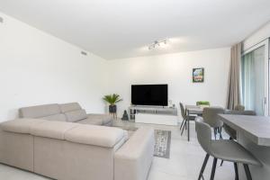 The infinity pool is a top feature of this apartment. This spacious apartment comes with 1 living room, 1 separate bedroom and 1 bathroom with a bath or a shower and a bidet. The fully equipped kitchen has a stovetop, a refrigerator, a dishwasher and kitchenware. The air-conditioned apartment features a flat-screen TV with streaming services, a washing machine, a tea and coffee maker, a seating area as well as garden views. The unit has 2 beds.