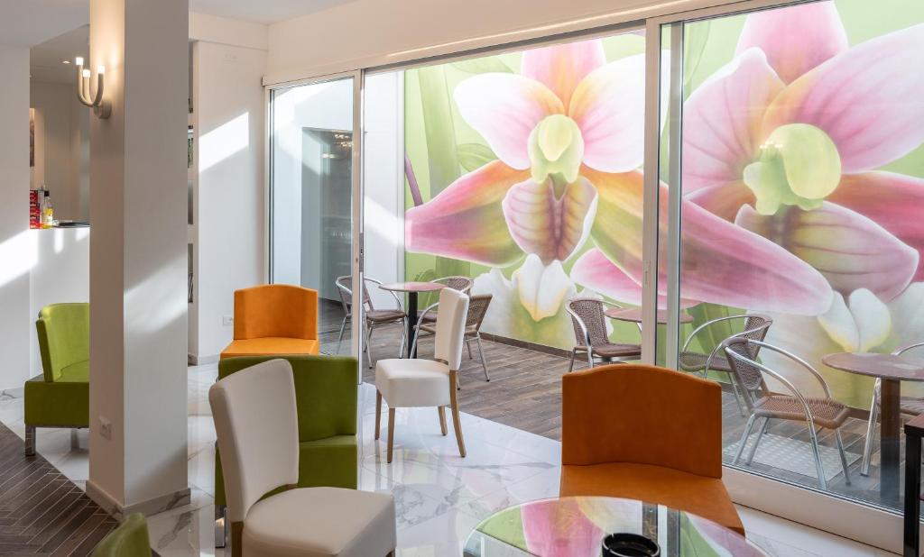 The rooms are equipped with air conditioning, balcony, TV, fridge, kettle for infusions, coffee machine, safe, bathroom with shower and hairdryer. All rooms are furnished in a modern style with parquet flooring. Each has a normal or French balcony with internal view.