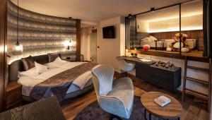 The fireplace is a top feature of this suite. The suite has 1 bedroom and 1 bathroom with a shower and free toiletries. The suite features a flat-screen TV with cable channels, soundproof walls, a minibar, a tea and coffee maker as well as mountain views. The unit has 1 bed.