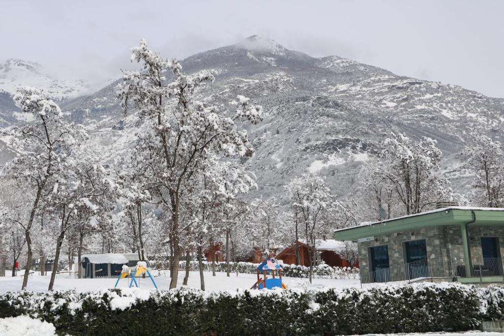 El camping ofrece terraza, vistas a la montaña, zona de estar, TV de pantalla plana, cocina totalmente equipada con nevera y horno, y baño privado con bidet y artículos de aseo gratuitos. También se ofrece fogones y hervidor.