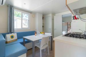 This air-conditioned mobile home consists of 1 living room, 2 separate bedrooms and 2 bathrooms with a shower. Guests can make meals in the fully equipped kitchenette that features a refrigerator, a dishwasher and a microwave. A seating area with a TV, a safe deposit box and a terrace are provided in this mobile home. The unit offers 5 beds.