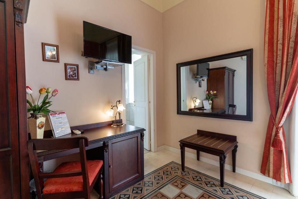Elegant, en suite room with tiled floors and Sicilian furniture from the 18th century. Offers free wired internet, air conditioning, a minibar and TV.
