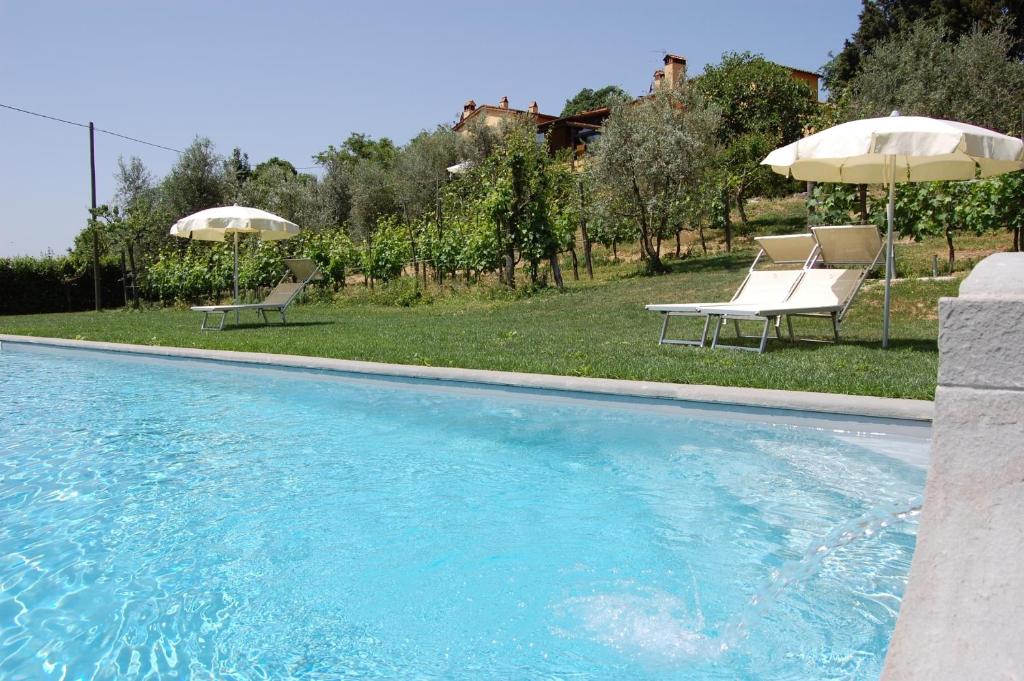 El agroturismo cuenta un restaurante que sirve cocina italiana. Podere Il Poggiolo dispone de piscina al aire libre, además de terraza solárium. Galería Uffizi está a 30 km del alojamiento, y Piazza de la Señoría está a 30 km.