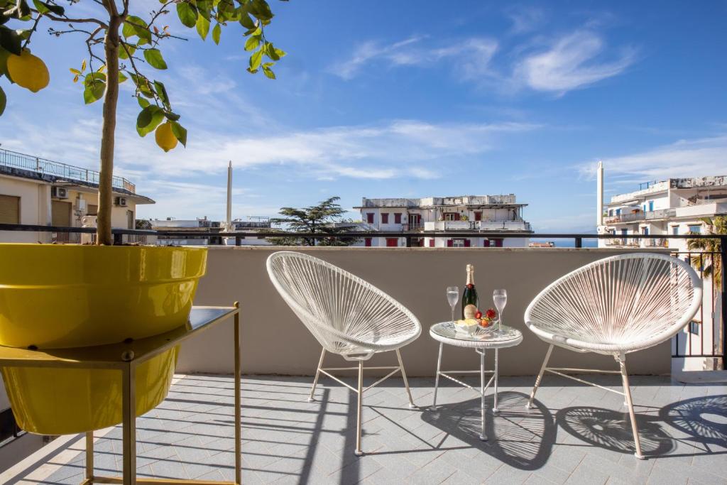 SorrentoVibes - Stylish & Elegant Flat with Terrace se encuentra en Sorrento, a 9 min a pie de Playa de Marameo y a 4,1 km de Marina di Puolo, y ofrece wifi gratis, terraza y aire acondicionado. Este apartamento ofrece alojamiento con balcón.