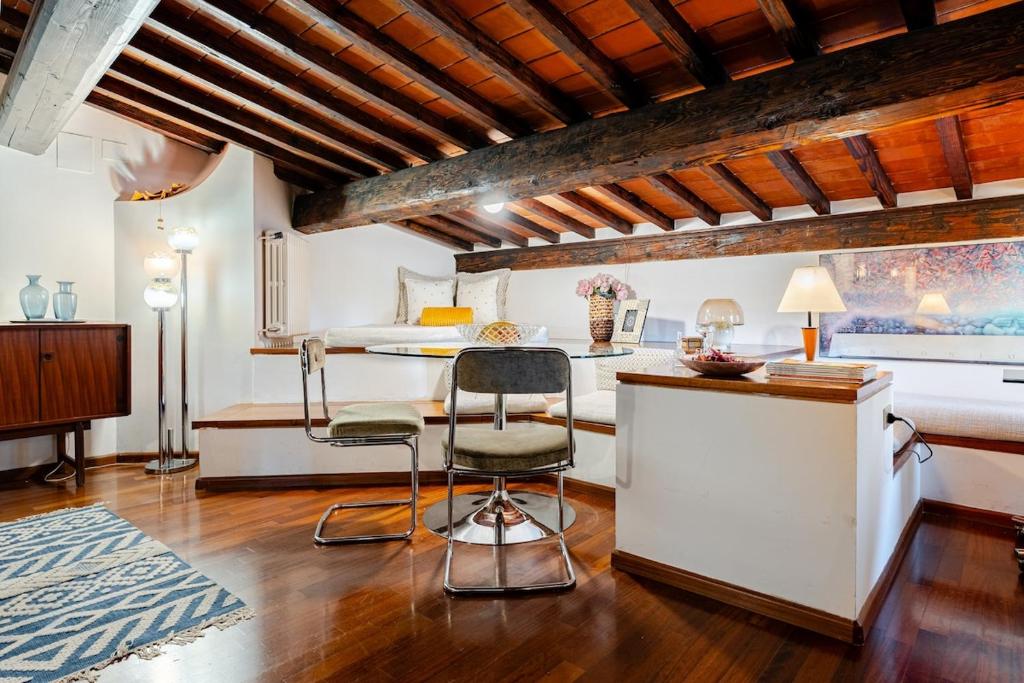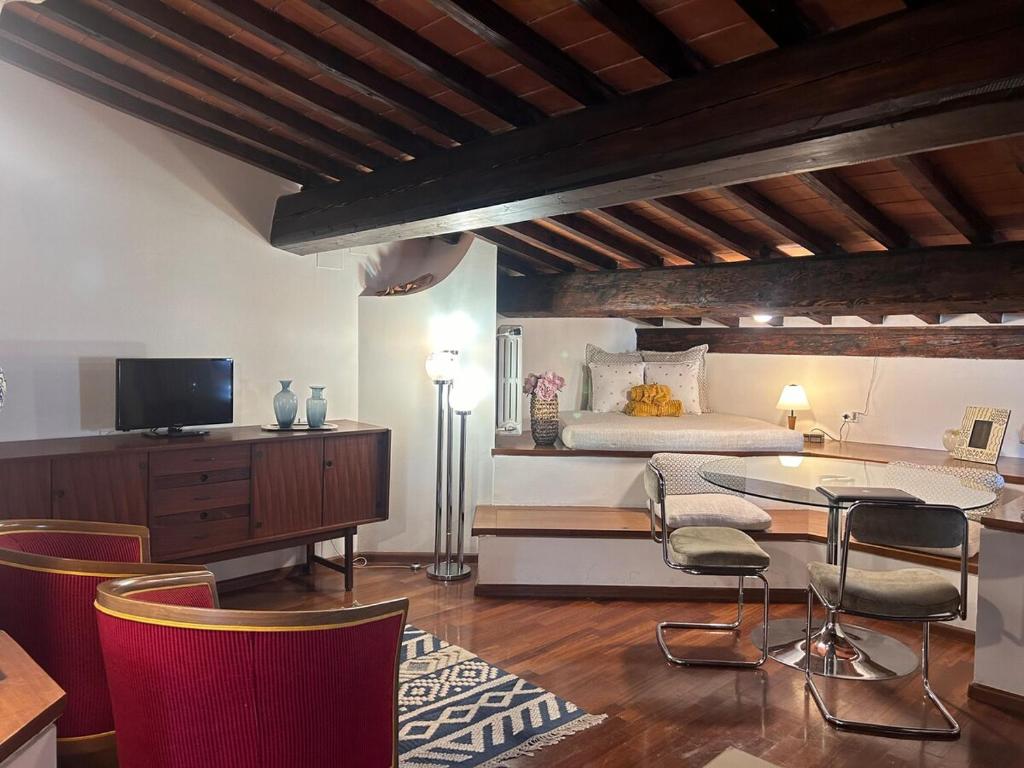 Sui Tetti di Chiasso Perduto ofrece wifi gratis y se encuentra en el centro de Florencia, a 4 min a pie de Palacio Pitti y a 400 metros de Ponte Vecchio. Este apartamento tiene acceso a una cocina totalmente equipada.