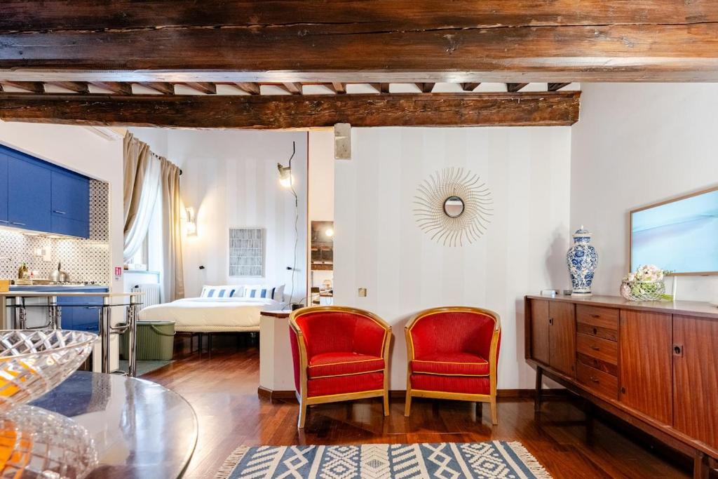 Este apartamento de 1 dormitorio ofrece TV de pantalla plana, aire acondicionado y sala de estar. Cerca del alojamiento hay puntos de interés como Galería Uffizi, Piazza de la Señoría y Santa María Novella.