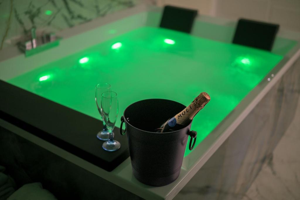 This holiday home boasts a hot tub and a spa bath. This holiday home consists of 1 living room, 1 separate bedroom and 1 bathroom with a shower and free toiletries. The holiday home's kitchenette, which features a stovetop and a refrigerator, is available for cooking and storing food. The holiday home provides air conditioning, a tea and coffee maker, a dining area, heating and a flat-screen TV. The unit offers 2 beds.