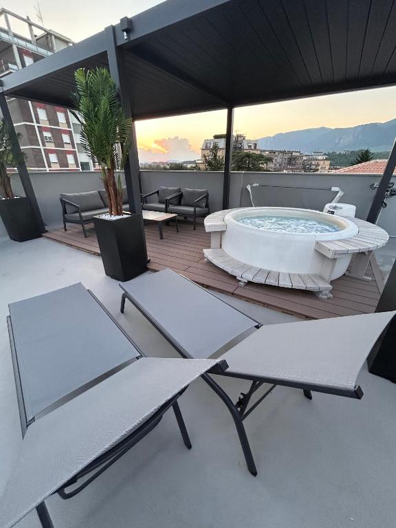 Suite Panoramic Attico, que está en Terni, tiene aire acondicionado y ofrece alojamiento con piscina privada, vistas a la ciudad y terraza. Este alojamiento con vistas a la piscina dispone de balcón y piscina.