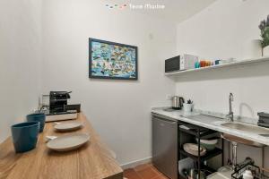 Este apartamento tiene aire acondicionado y cuenta con 1 dormitorio, TV de pantalla plana y zona de cocina con nevera y microondas.