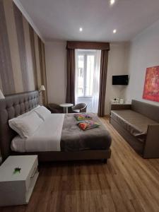 El alojamiento está a 1,7 km del centro de la ciudad y a 6 min a pie de Estación de metro Termini. El hostal o pensión ofrece habitaciones con aire acondicionado, escritorio, hervidor, nevera, caja fuerte, TV de pantalla plana y baño privado con bidet.