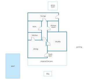 La villa tiene 2 dormitorios, una cocina con lavavajillas y microondas, y 1 baño con ducha, secador de pelo y lavadora. Hay toallas y ropa de cama en la villa. Se puede disfrutar de la piscina al aire libre en la villa.