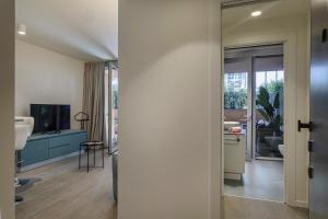The apartment offers air conditioning, a washing machine, as well as a private bathroom boasting a shower and a bidet. The well-fitted kitchen has a refrigerator, a dishwasher, kitchenware and a microwave. Featuring a patio, this apartment also provides a tea and coffee maker, a dining area and a TV. The unit has 1 bed.