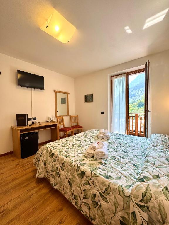 Featuring a balcony with mountain views. All rooms have simple wooden furnishings and parquet floors.