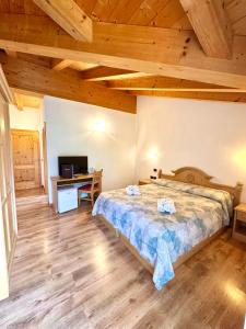 With views of the surrounding mountains. All rooms have simple wooden furnishings and parquet floors.