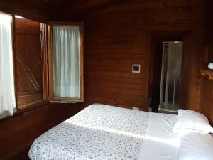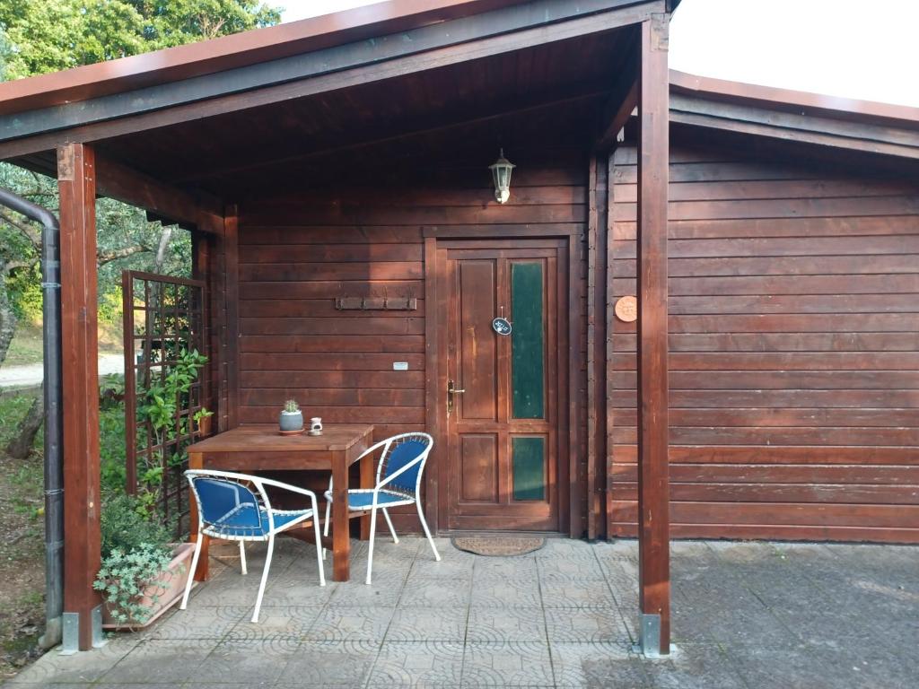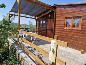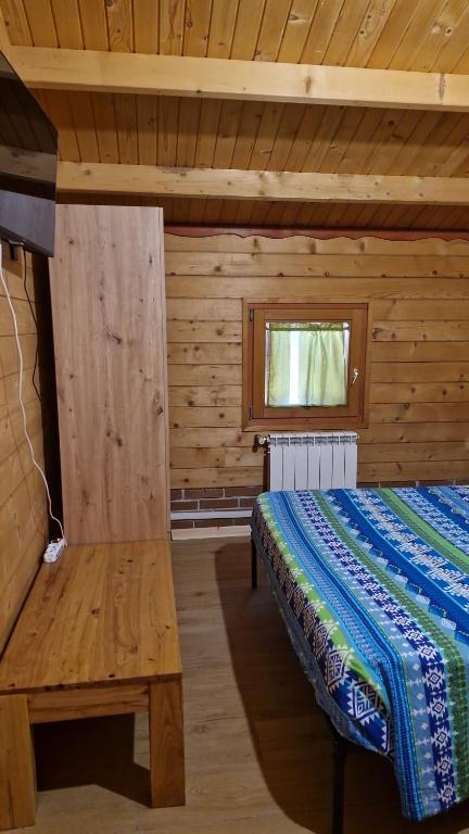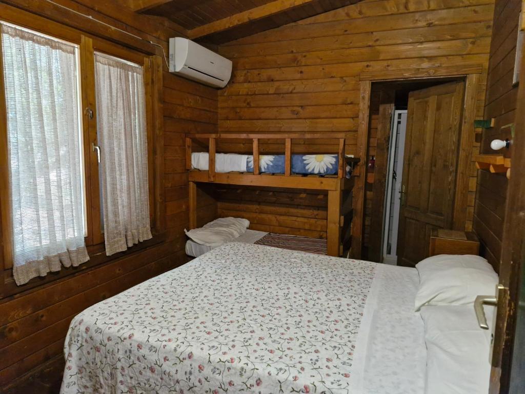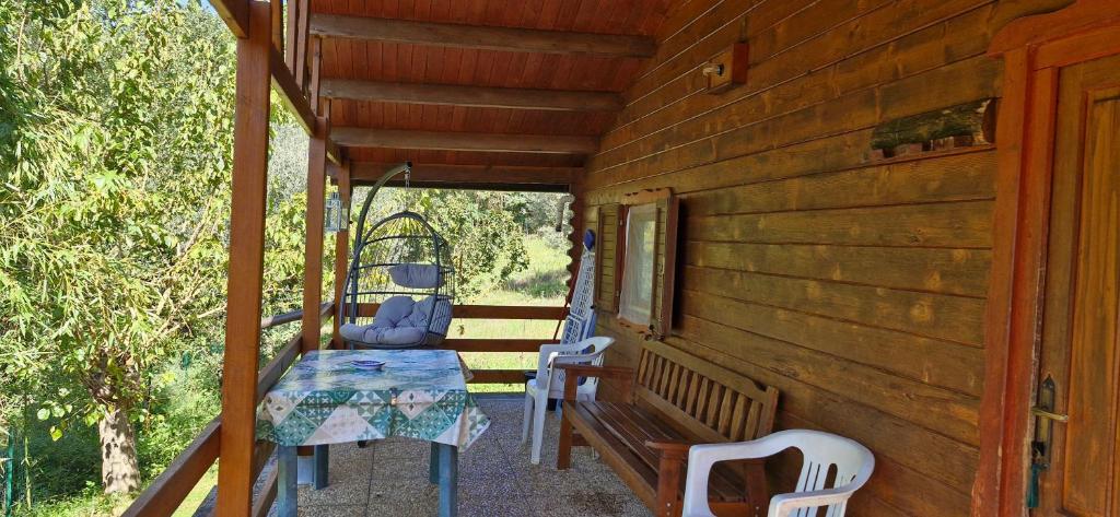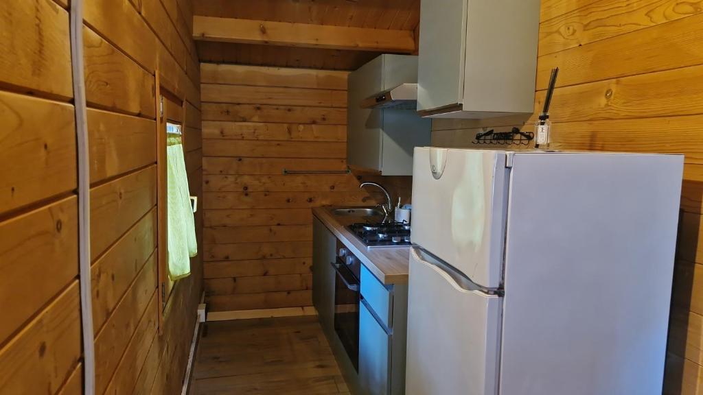 Wooden bungalow with a fully equipped kitchenette, private bathroom and external barbecue.