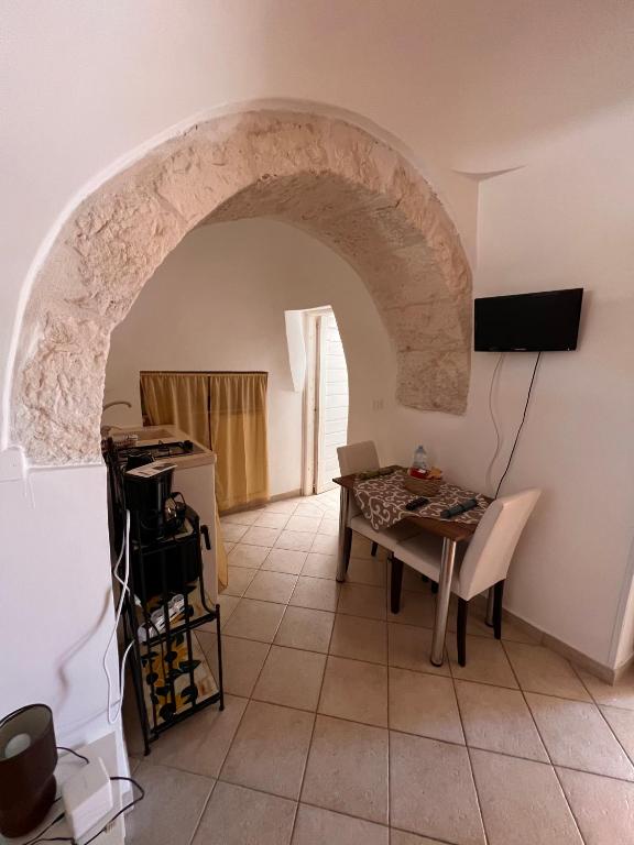 Set in an original stone Trullo house, this studio features a private patio, kitchenette and dining area.
