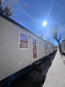 The air-conditioned mobile home features 2 bedrooms and 1 bathroom with a shower and a hairdryer. Guests can make meals in the kitchen that comes with a stovetop, kitchenware, a microwave and a tea and coffee maker. Among the room amenities are a seating area, a dining area and a wardrobe as well as garden views. The unit offers 3 beds.