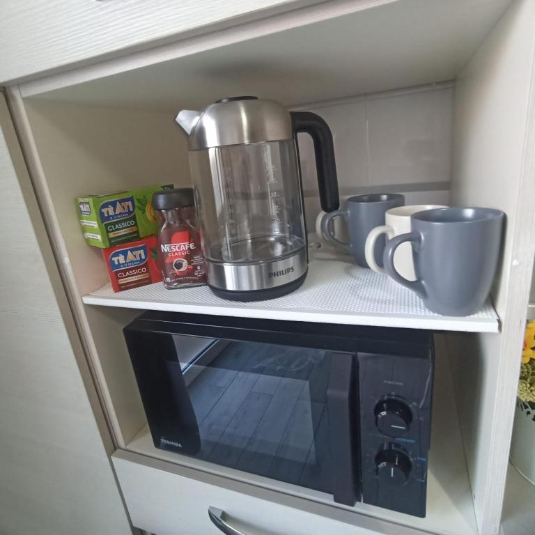 La cuisine est pourvue d’un micro-ondes et d’une plaque de cuisson. Elle est également dotée d’une machine à café et d’une bouilloire. Vous séjournerez à respectivement 18 km et 19 km de ces lieux d’intérêt : Métro Basilica San Paolo et Métro Laurentina.