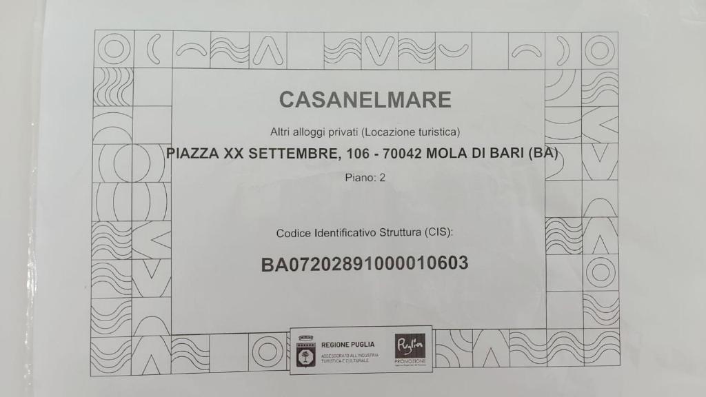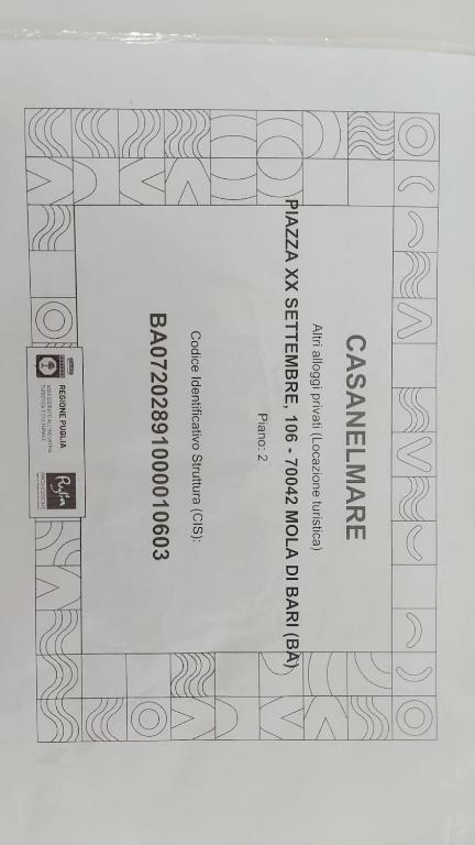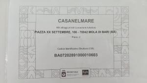Il est possible de vérifier la régularité du CIN de l’hébergement sur le site du Ministère du Tourisme: Recherche CINLieux près de casanelmare, Mola Di Bari
