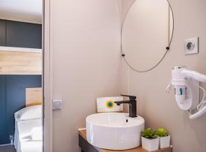 Featuring a private entrance, this air-conditioned mobile home comprises 1 living room, 2 separate bedrooms and 2 bathrooms with a shower and a bidet. Guests can make meals in the kitchen that comes with a stovetop, a refrigerator, a dishwasher and kitchenware. Boasting a terrace, this mobile home also provides a seating area, a dining area and a TV. The unit offers 3 beds.