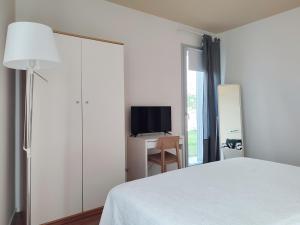 Featuring a private entrance, this air-conditioned holiday home is comprised of 1 living room, 1 separate bedroom and 1 bathroom with a walk-in shower and a bidet. The well-fitted kitchen has a stovetop, a refrigerator, kitchenware and a microwave. This holiday home features a washing machine, flat-screen TV, garden views, as well as chocolate for guests. The unit offers 2 beds.