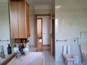 Cet hébergement offre une vue sur le jardin et possède un patio. Disposant d’une terrasse et offrant une vue sur la ville, cette maison de vacances possède 3 chambres, un salon, une télévision à écran plat, une cuisine équipée avec un réfrigérateur et un lave-vaisselle, ainsi que 1 salle de bains avec un bidet.