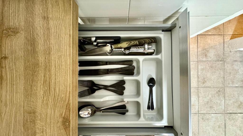 Cet appartement comporte 1 chambre, une cuisine entièrement équipée avec un réfrigérateur et un four, ainsi que 1 salle de bains avec un bidet et une douche. Des serviettes et du linge de lit sont disponibles.