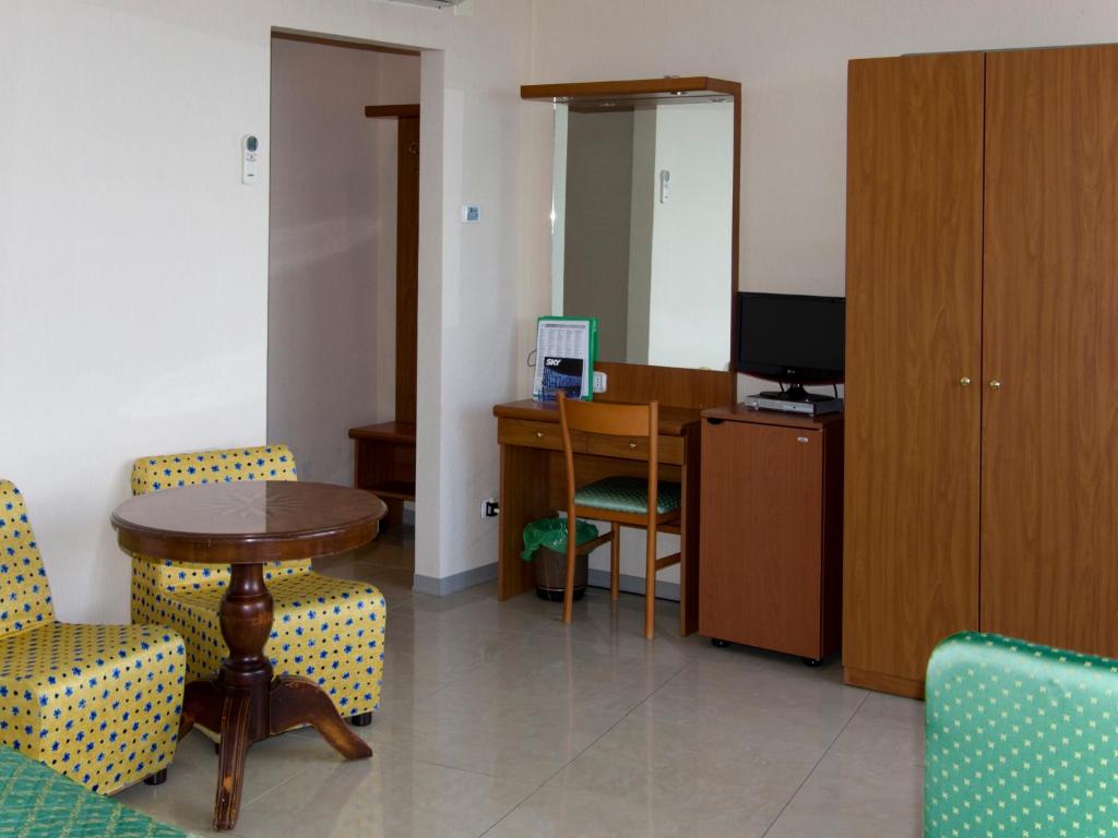 Entouré d'oliviers et de pinèdes, le Cristallo fournit un vaste parking gratuit accessible par un ascenseur depuis l'entrée principale. Le bar et la salle de télévision commune s'ouvrent sur la terrasse.