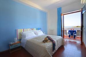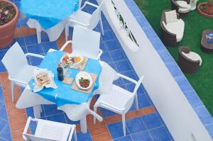 Les chambres sont revêtues de carrelage, climatisées et décorées dans des tons bleus. Elles disposent d'une salle de bains privative, d'une télévision à écran LCD et de grandes fenêtres. Certaines bénéficient d'un balcon avec vue sur la mer.